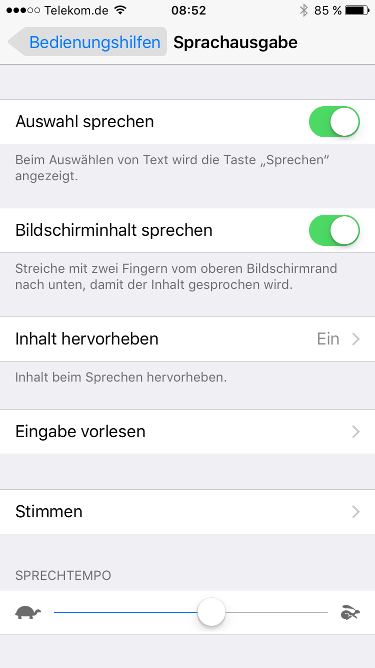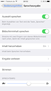 Als nächstes gibt es die Möglichkeit innerhalb der Sprachausgabe, dass nicht nur Wörter vorgelesen und hervorgehoben werden, sondern auch Sätze.