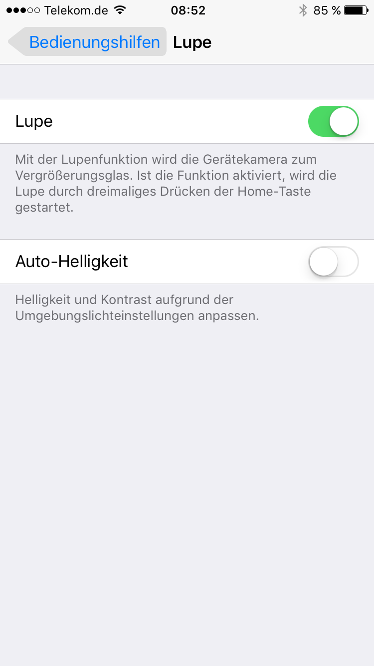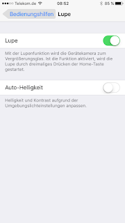 In der Unterseite Lupe aktiviert man diese, in dem man den Schalter nach rechts legt.