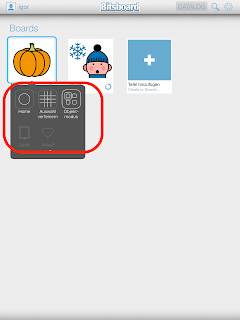 Danach bekommt ihr alle Menüobjekte angezeigt, die ihr ausgewählt habt. Der Objektmodus ist im Bild angestellt. Sollte der Punktmodus aktiv sein, bewegt mittels Scanning den Indikator bis zum Icon Punktmodus und bestätigt eure Auswahl, danach ändert sich die Scanning-Art. Wichtig ist: mit Objektmodus lassen sich die Objekte einzeln in Bitsboard auswählen.